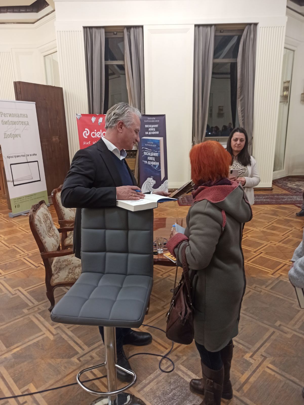 Писателят Захари Карабашлиев представи пред добричката публика най-новата си книга – „Последният ловец на делфини“. Организатори на събитието бяха Регионална библиотека „Дора Габе“ и издателство „Сиела“.